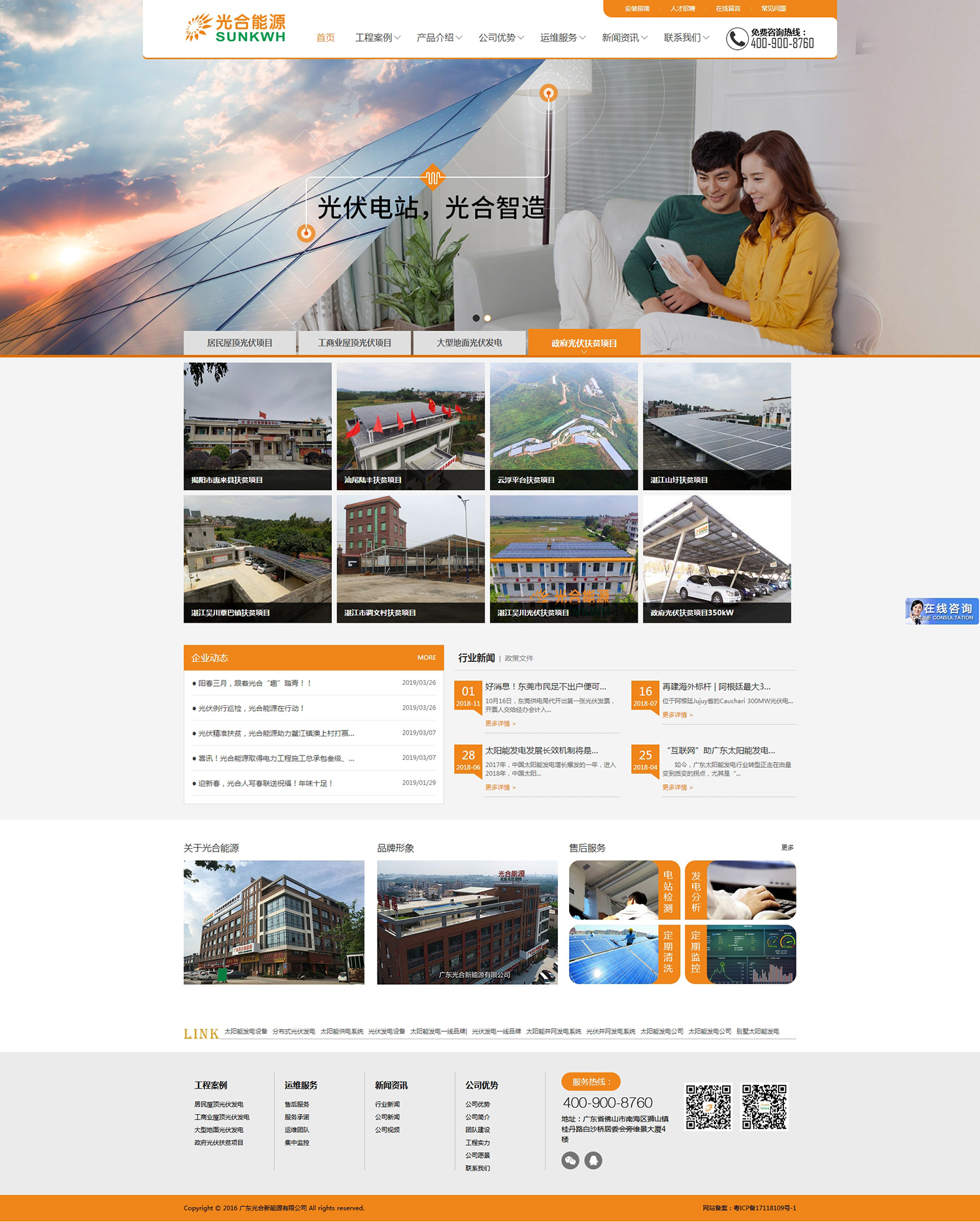 廣東光合新能源有限公司位于佛山市南海區(qū),是屋頂光伏電站領跑者認證品牌。公司與南方電網(wǎng)有著緊密的合作關(guān)系,首建南海區(qū)一個工商業(yè)光伏發(fā)電項目、佛山市一個居民分布式光伏項目,至今已在佛山、廣州、東莞、中山、惠州、江門、肇慶、云浮、清遠、韶關(guān)、陽江、湛江、上海等多個城市幫助數(shù)萬用戶安裝了光伏電站!專業(yè)高效的項目建設和優(yōu)秀的工程質(zhì)量,贏得了廣大客戶的一致贊譽。