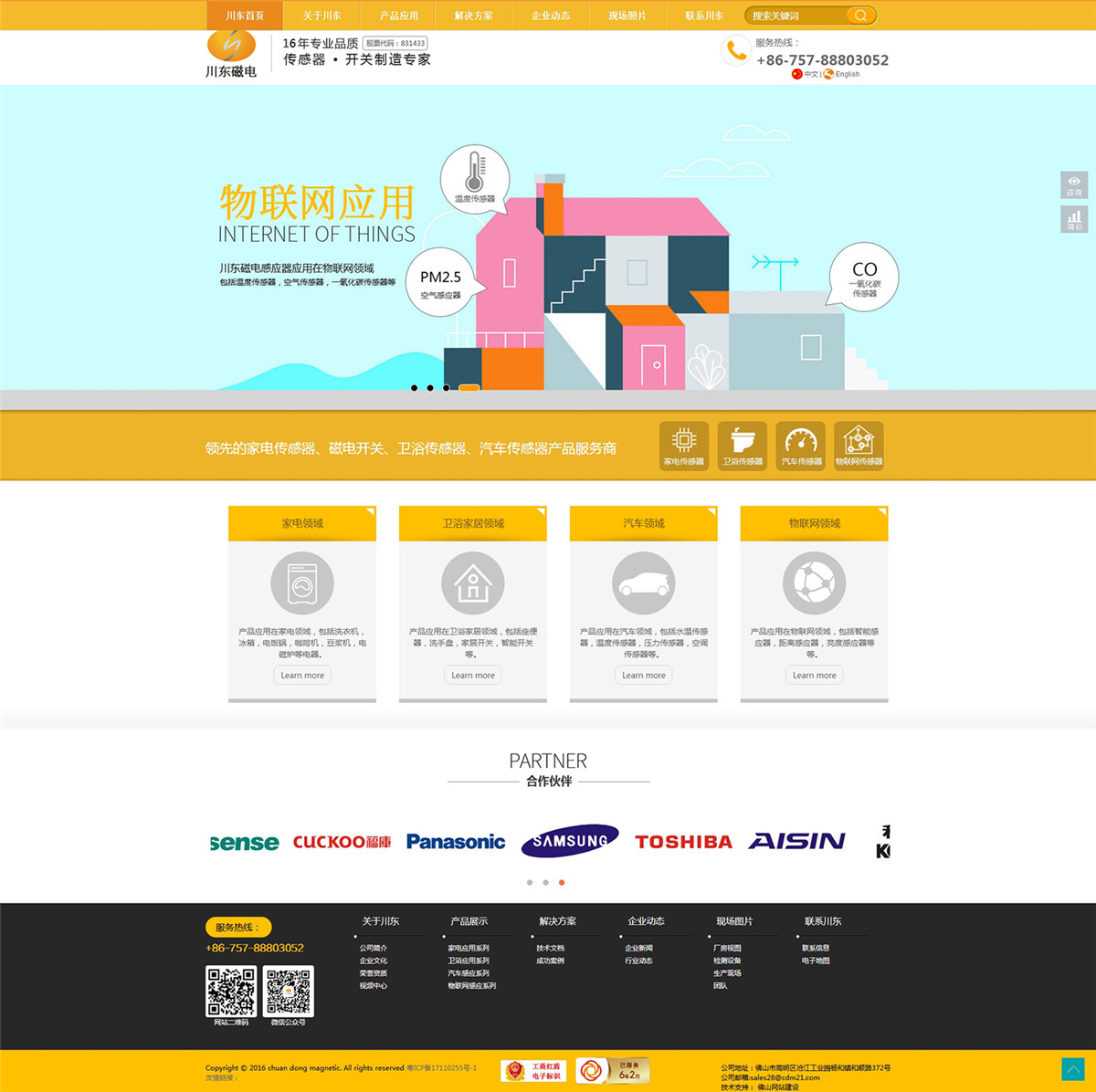 佛山市川東磁電股份有限公司是專業(yè)從事敏感元件與傳感器、控制器研發(fā)、生產(chǎn)和銷售一體的高新技術(shù)企業(yè)。自成立以來,致力于成為家電、汽車、醫(yī)療健康、環(huán)保節(jié)能和裝備制造業(yè)領(lǐng)域的應(yīng)用技術(shù)及方案提供商,著力于打造成基于敏感材料制備技術(shù)的磁敏、熱敏、濕敏、力敏和光敏等全方位的傳感和控制技術(shù)綜合集成平臺(tái)。