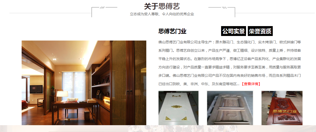 今天來(lái)分享一個(gè)原木雕花門(mén)網(wǎng)站建設(shè)案例——佛山思傅藝門(mén)業(yè)有限公司