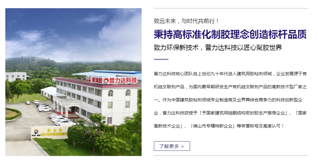 普力達(dá)科技核心團(tuán)隊(duì)自上世紀(jì)九十年代進(jìn)入建筑用膠粘劑領(lǐng)域,企業(yè)發(fā)展源于有機(jī)硅交聯(lián)劑產(chǎn)品,為國內(nèi)早期研發(fā)生產(chǎn)有機(jī)硅交聯(lián)劑產(chǎn)品的高新技術(shù)型廠家之一。作為建筑膠粘劑領(lǐng)域?qū)I(yè)制造商及業(yè)界具綜合競(jìng)爭(zhēng)力的科技創(chuàng)新型企業(yè),普力達(dá)科技獲授予「予國家建筑用硅酮結(jié)構(gòu)密封膠生產(chǎn)推薦企業(yè)」、「國家高新技術(shù)企業(yè)」、「佛山市專精特新企業(yè)」等榮譽(yù)稱號(hào)及高度認(rèn)可!