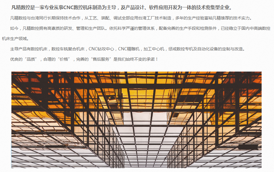凡精數(shù)控與臺(tái)灣同行長期保持技術(shù)合作,從工藝、裝配、調(diào)試全部應(yīng)用臺(tái)灣工廠技術(shù)制造,多年的生產(chǎn)經(jīng)驗(yàn)富裕凡精雄厚的技術(shù)實(shí)力。