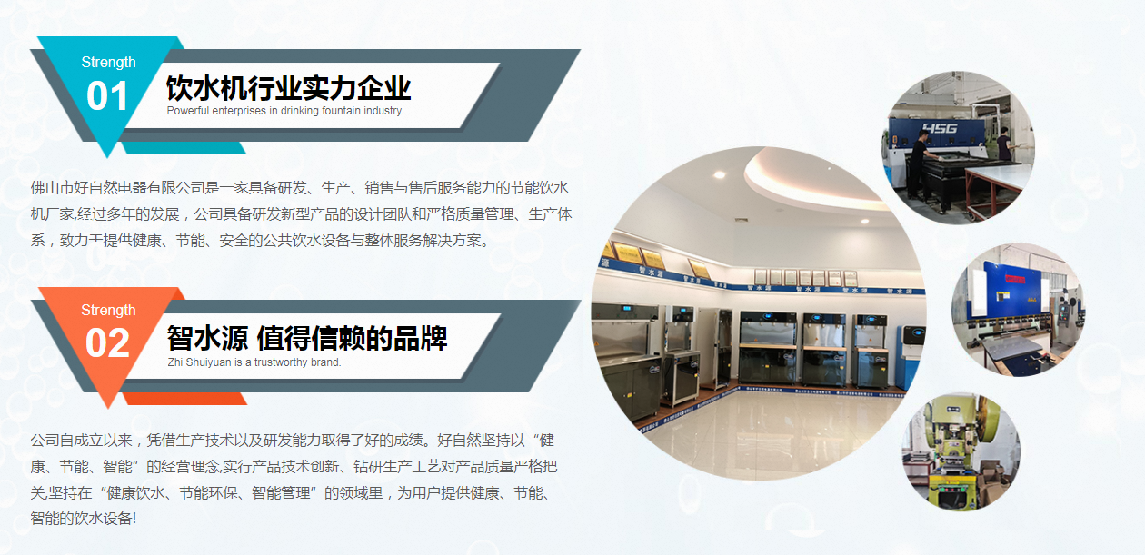 佛山市好自然有限公司是一家具備研發(fā)、 生產(chǎn)、銷售與售后服務(wù)能力的節(jié)能飲水機(jī)廠家,經(jīng)過多年的發(fā)展,公司具備研發(fā)新型產(chǎn)品的設(shè)計(jì)團(tuán)隊(duì)和嚴(yán)格質(zhì)量管理、生產(chǎn)體系,致力于提供健康、節(jié)能、公共飲水設(shè)備與整體服務(wù)解決方案。