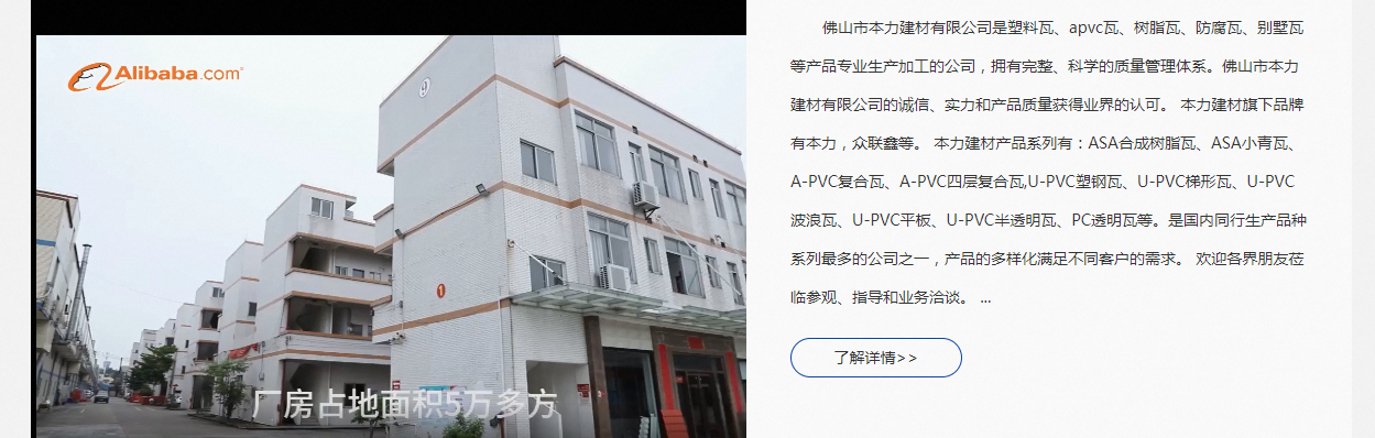 佛山市本力建材有限公司是一家集研發(fā)、設(shè)計(jì)、生產(chǎn)、銷售于一體的專業(yè)化屋面建材公司。經(jīng)過多年的發(fā)展,本力建材已擁有員工100多人,占地總面積30000多平方米,擁有9條先進(jìn)生產(chǎn)線。本力建材旗下品牌有本力,眾聯(lián)鑫等。