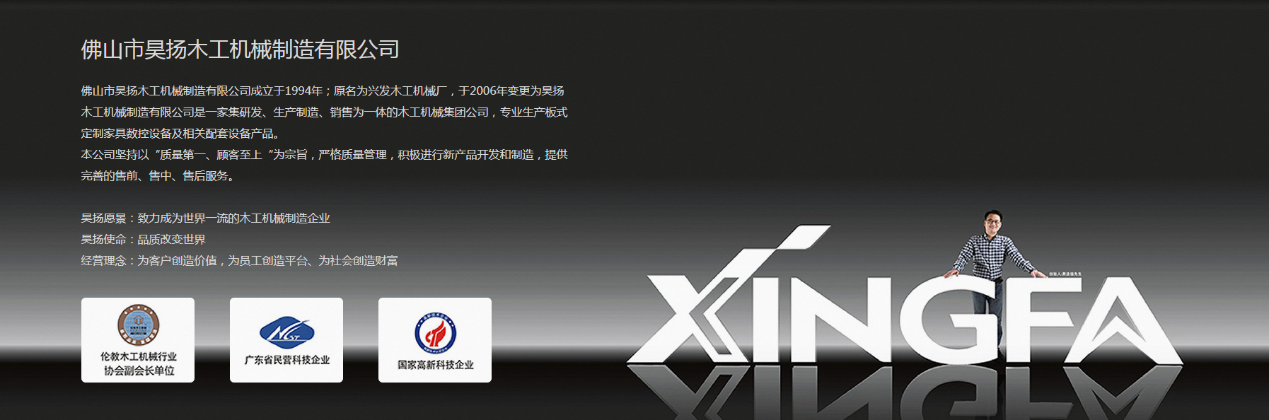 佛山市昊揚(yáng)木工機(jī)械制造有限公司成立于1994年;原名為興發(fā)木工機(jī)械廠,于2006年變更為昊揚(yáng)木工機(jī)械制造有限公司是一家集研發(fā)、生產(chǎn)制造、銷售為一體的木工機(jī)械集團(tuán)公司,專業(yè)生產(chǎn)板式定制家具數(shù)控設(shè)備及相關(guān)配套設(shè)備產(chǎn)品。
