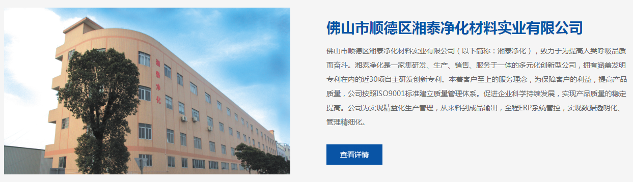 今天來(lái)分享一個(gè)空氣過(guò)濾網(wǎng)網(wǎng)站建設(shè)案例——佛山市順德區(qū)湘泰凈化材料實(shí)業(yè)有限公司