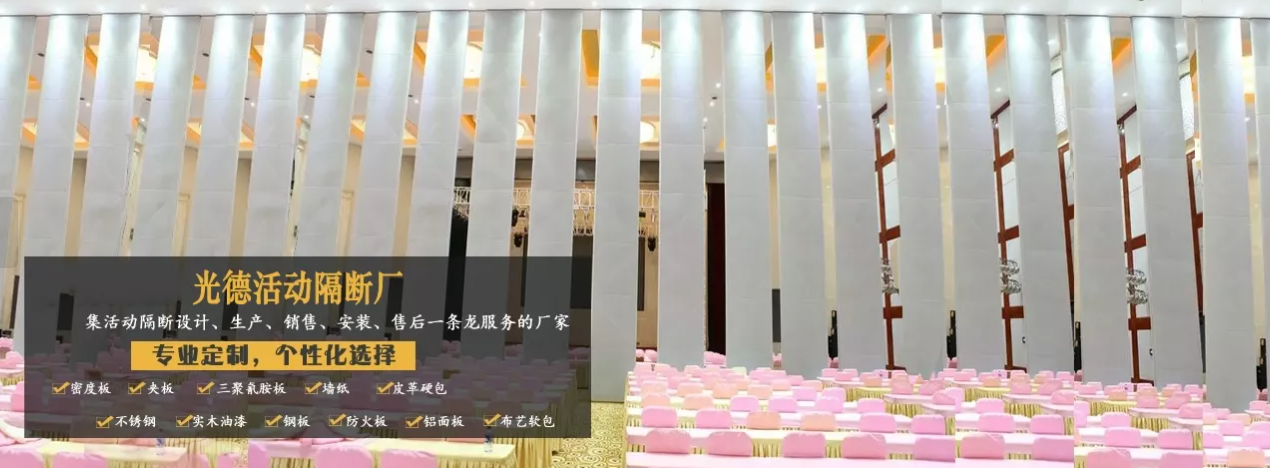 公司自成立以來(lái)一直致力于隔斷技術(shù)的研發(fā),以高超的研發(fā)技術(shù)、嚴(yán)謹(jǐn)?shù)脑O(shè)計(jì)方案、先進(jìn)的生產(chǎn)設(shè)備、好的制作工藝、科學(xué)的質(zhì)量管理體系、嚴(yán)格的檢驗(yàn)流程、齊全的產(chǎn)品系統(tǒng)規(guī)格、好的施工水平、好的售后服務(wù)等,為客戶量身定制多樣化隔斷產(chǎn)品,我們主要生產(chǎn)65型活動(dòng)隔斷、80型活動(dòng)隔斷、85型活動(dòng)隔斷、100型活動(dòng)隔斷、125型高隔音雙層活動(dòng)隔斷、電動(dòng)型自動(dòng)活動(dòng)隔斷、單(雙)玻活動(dòng)隔斷等系列產(chǎn)品。光德屏風(fēng)具有防刮、防蛀、防潮、抗裂、堅(jiān)固不變形、易拆裝、時(shí)尚美觀等特點(diǎn),廣泛用于醫(yī)院、學(xué)校、銀行、酒店、餐廳、會(huì)議室,畫展中心,宴會(huì)廳等場(chǎng)所。
